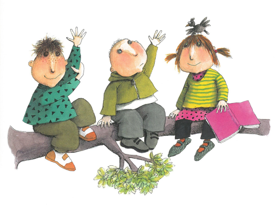 Her snakkar me om det å vera vener, me syng saman og har konkurransar og aktivitetar. Me er også ein tur borte i kyrkja for å helsa på Marit prest, og læra litt om kyrkja. Påfølgjande søndag er det skulesekkgudsteneste, der borna får utdelt boka "Tre i eit tre".
